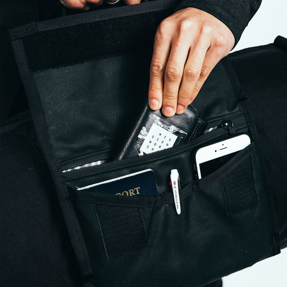 Mini Foliossa on tilava vetoketjullinen lokero, johon mahtuu helposti matkatarvikkeet. Kaksi puhelimille mitoitettua etutaskua ja keskellä oleva kynäkolo lisäävät organisaatiota.