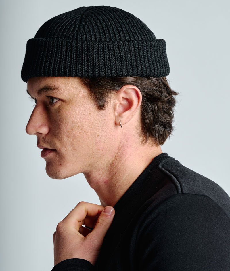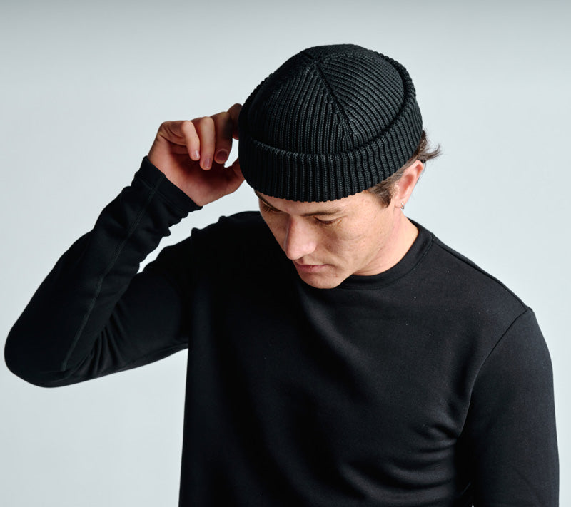 Basin on mallinnettu merimiesten ja kauppamerijalkaväen yli vuosisadan ajan käyttämän klassisen kellolakin mukaan. Portugalin pohjoisimmalla rannikolla neulottu, paksurivinen rakenne ja täydellinen puuvillan ja akryylin sekoitus tekevät Basinista pehmeän, lämpimän ja poikkeuksellisen kestävän. Voidaan käyttää yksinkertaisella tai kaksinkertaisella taitoksella erilaisen ulkonäön ja istuvuuden aikaansaamiseksi.