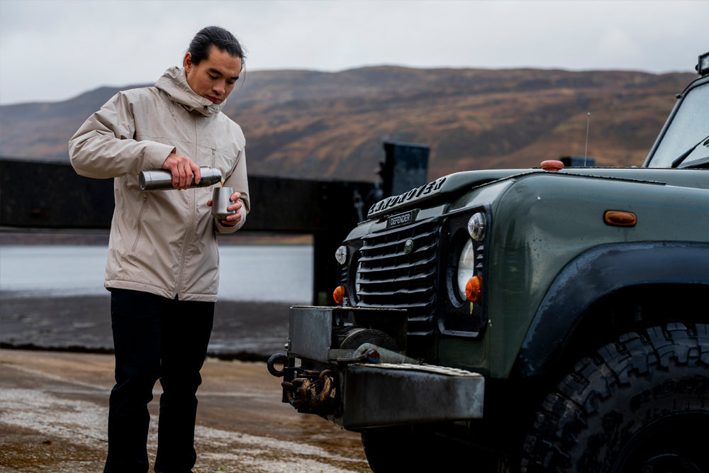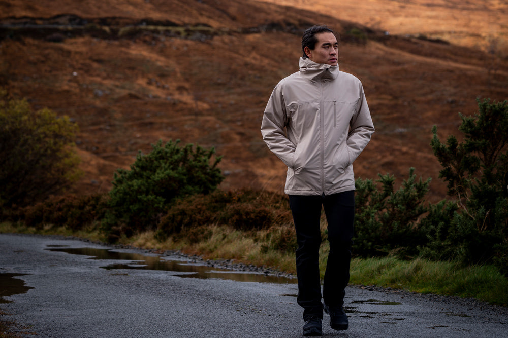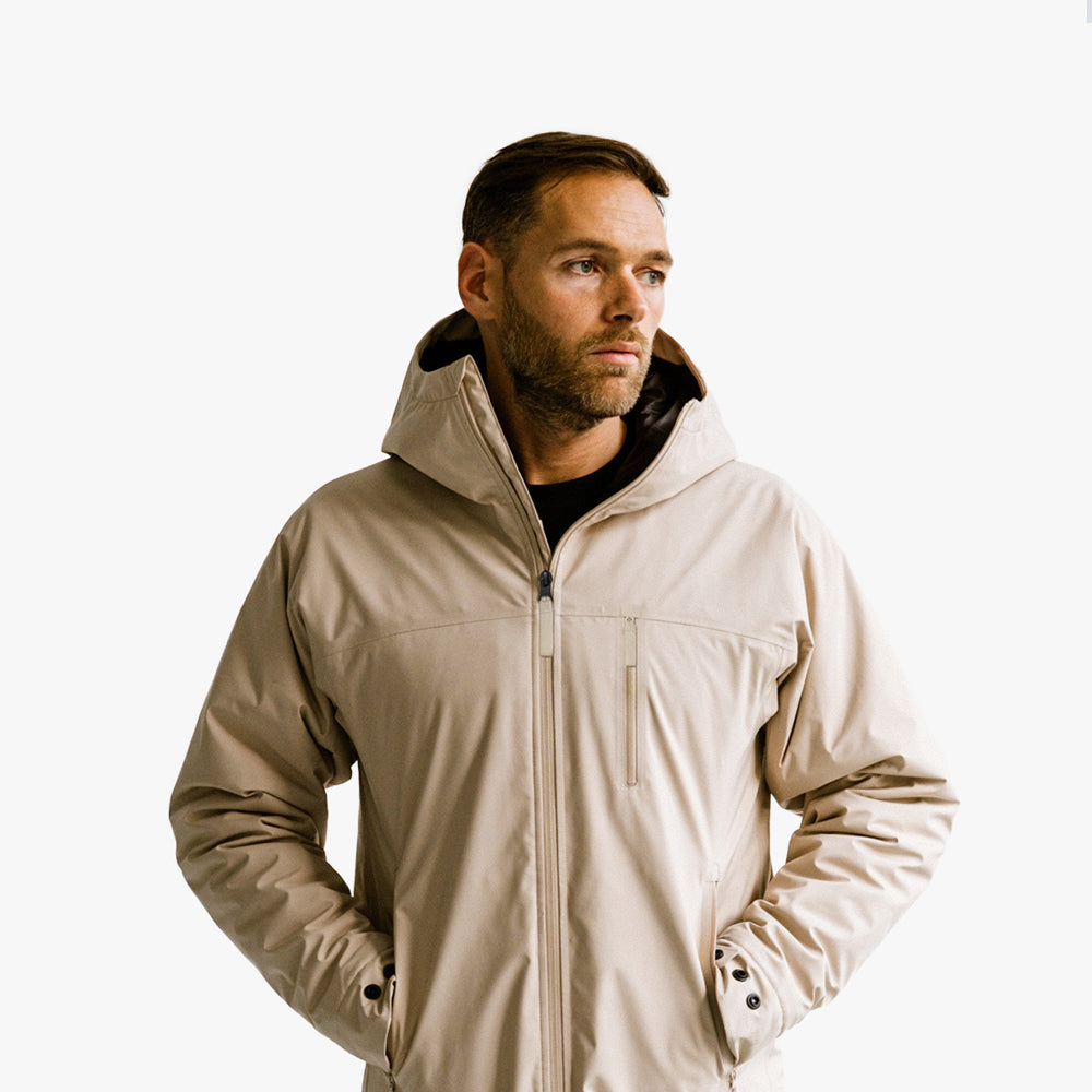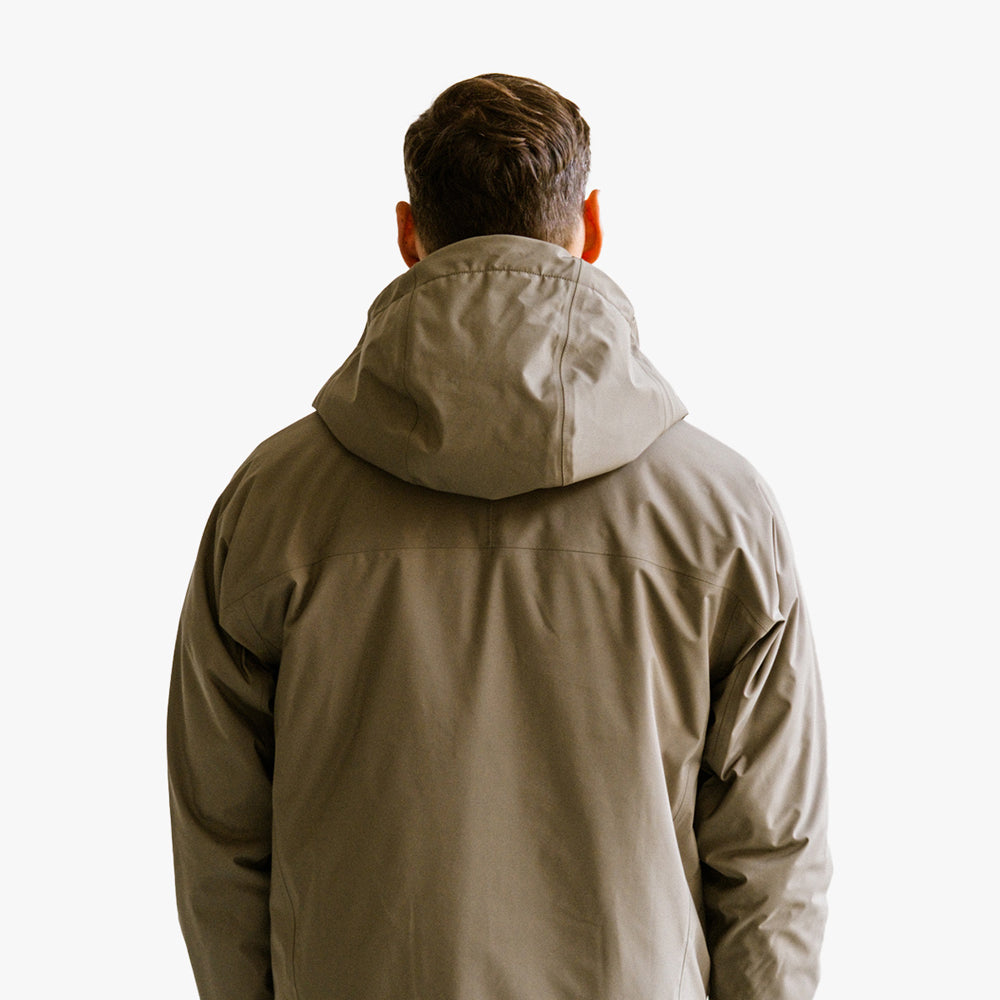 3-kerroksinen kuori on täysin saumattu, ja siinä on kalvo, joka päästää aktiivisesti höyryn ulos ja pitää sateen ulkona, ja se toimii synergisesti PrimaLoft-eristeen kanssa kehon lämpötilan säätelemiseksi. Kuori on käsitelty ympäristöystävällisellä C0 DWR (kestävä vettähylkivä) -aineella, joka auttaa haihduttamaan sadetta.