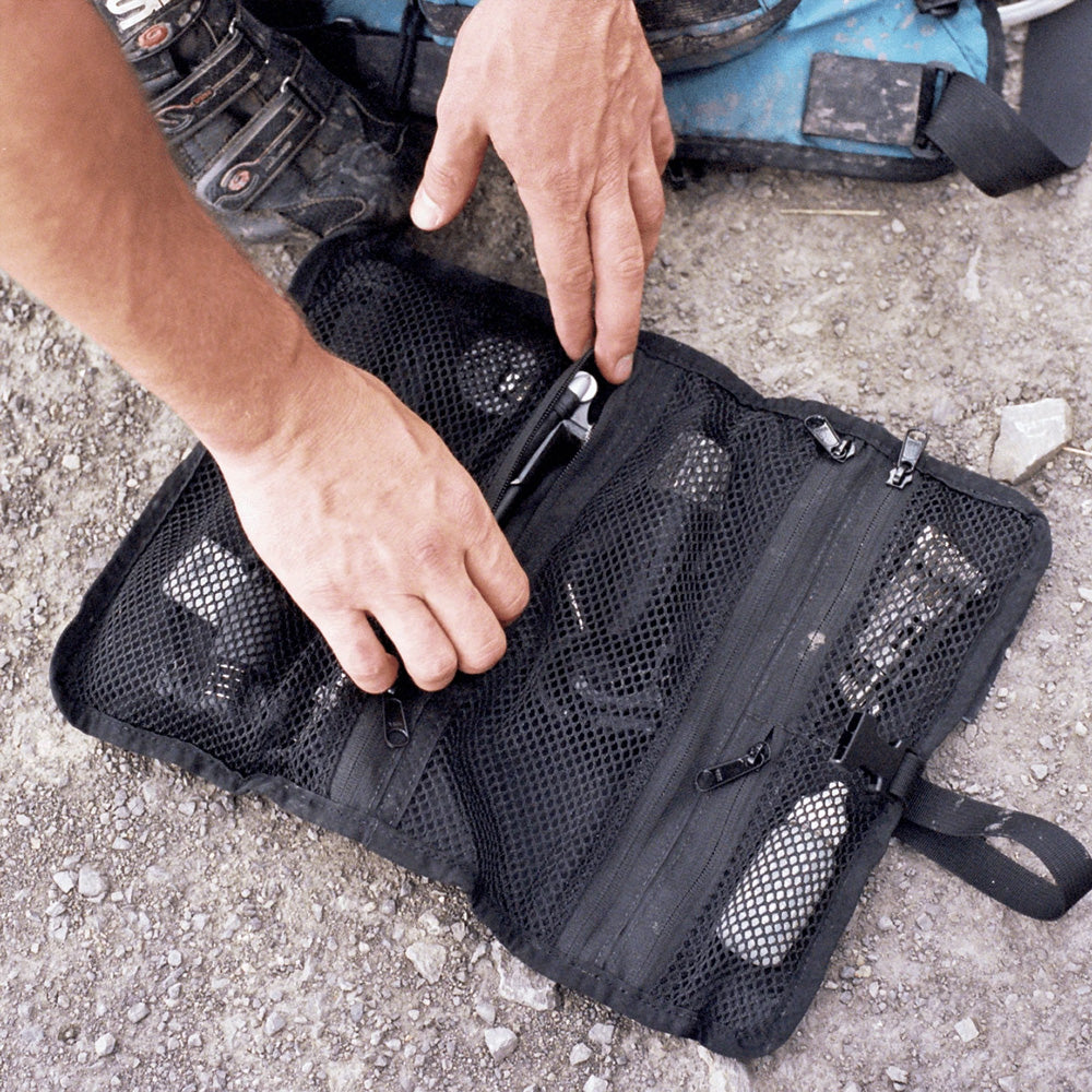Työkalurulla pitää kaikki olennaiset tarvikkeesi täydellisesti järjestyksessä neljässä erikokoisessa vetoketjullisessa verkkotaskussa. Se voidaan siirtää laukusta toiseen ja avata helposti litteäksi työkalujen tai päivittäisten teknisten esineiden esillepanoa varten. Tool Roll on valmistettu XPAC VX21:stä tai Cordurasta, ja siinä käytetään kauttaaltaan YKK-vetoketjuja.