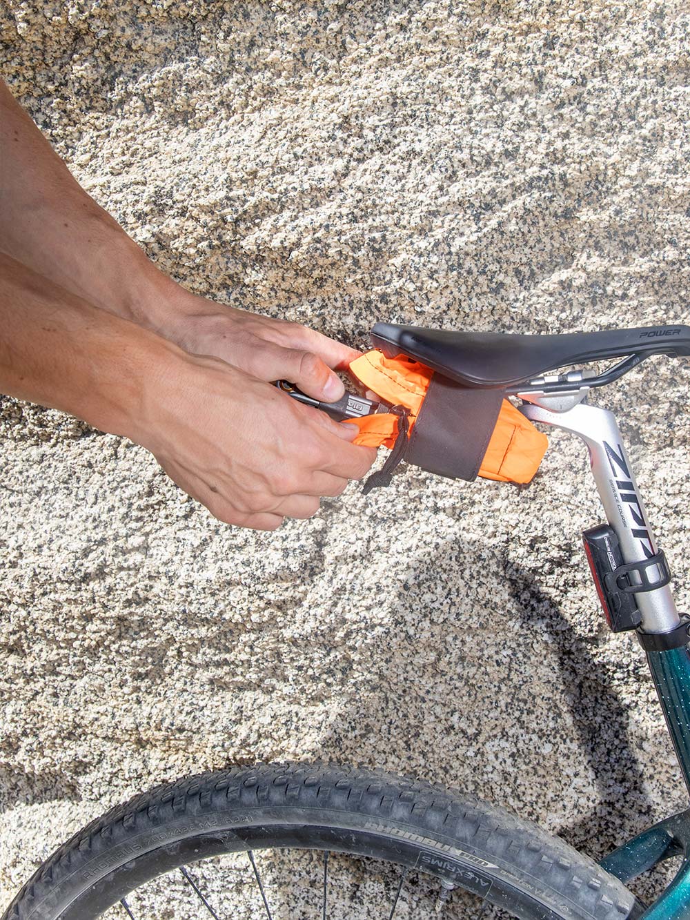 Mission Saddle Bag kiinnittyy mihin tahansa maantie-, MTB- tai sorapyörän istuimeen ja on yhteensopiva kaikkien pyöräpenkkien kanssa. Satulalaukku on valmistettu vedenpitävästä Dimension Polyant VX -kankaasta ja Hypalon-kankaasta, joten se on erittäin säänkestävä ja nopeasti kuivuva. Kompakti muotoilu on varustettu YKK Aquaguard -vetoketjulla ja neljällä sisäisellä joustavalla sisätaskulla, jotka pitävät työkalut vakaana ja järjestyksessä.
