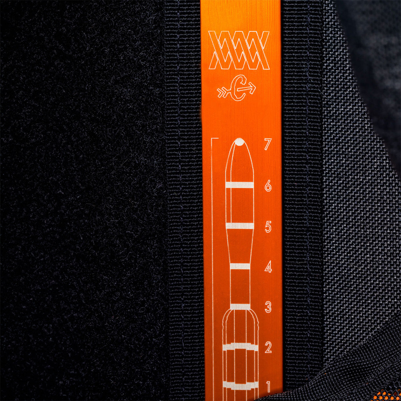 Valmistettu ilmailu- ja avaruusteollisuuden 6061-T6-alumiinista lujuuden ja alhaisen painon vuoksi. Mukautettu laserkaiverrettu collab-grafiikka ja erityinen kanto-oranssi anodisointi.