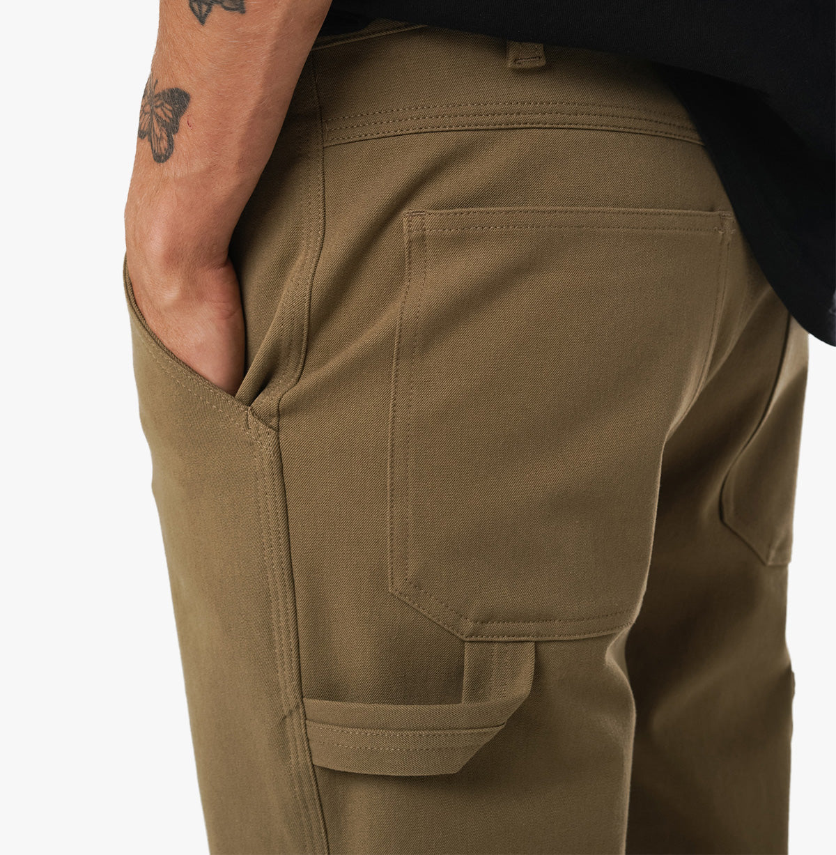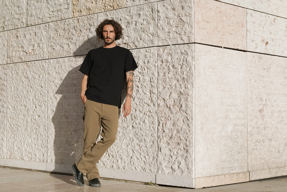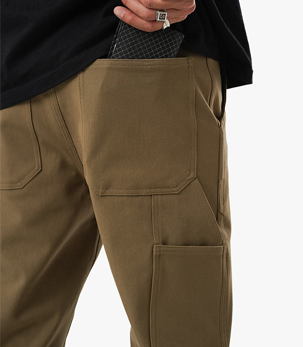Paragon on meidän versiomme klassisesta askarteluhoususta. Valmistettu New Yorkissa samasta 4-suuntaisesta stretch-kankaasta kuin Mission Jean, ja leikattu rennolla istuvuudella ja leveämmällä lahkeella liikkuvuuden lisäämiseksi. Mectex M.I.S. on kehittänyt tämän kehittyneen kankaan Mission Workshop :aa varten tehtaallaan Comossa Italiassa, ja se on erittäin joustava kestävyydestä tai rakenteesta tinkimättä.