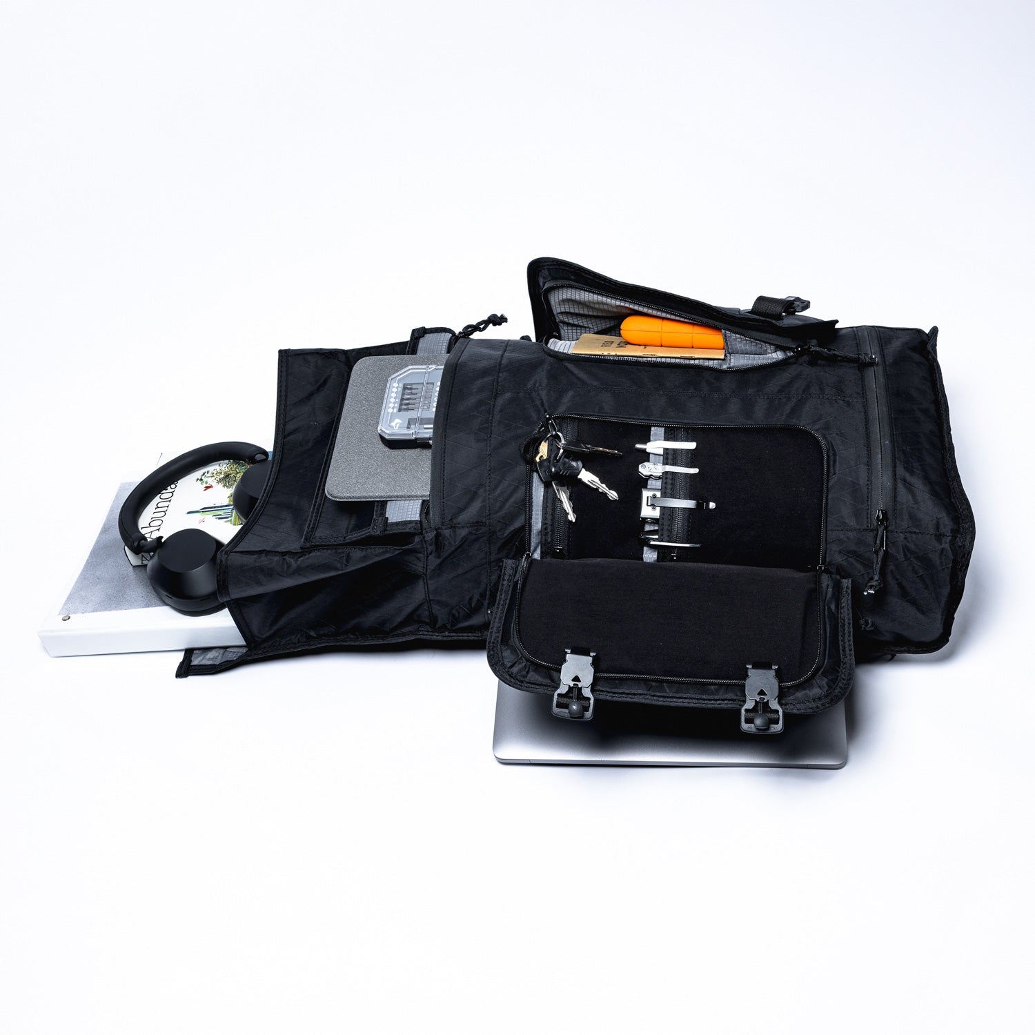 Designed to carry everything you need for work, play, and the occasional overnight trip. Inside are purpose-built pockets for your laptop, iPad, phone, chargers, keys, and sunglasses, along with a spacious main compartment for clothing and shoes. The front pockets feature Fidlock® magnetic buckles for quick and secure access.