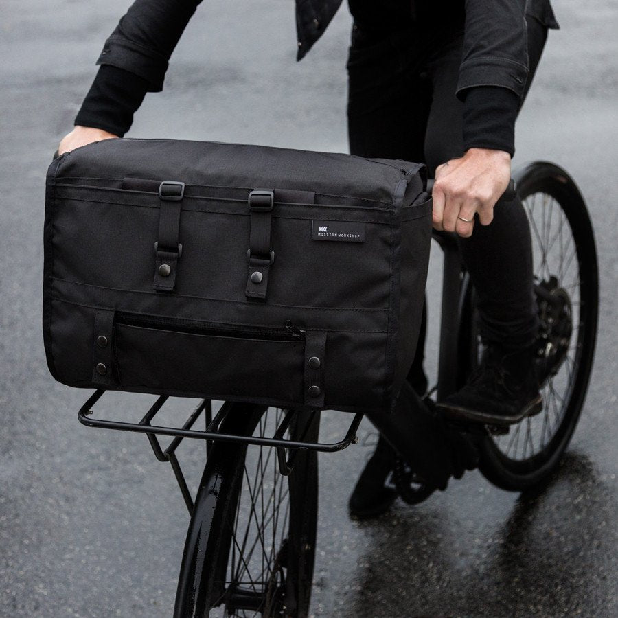 Useita kantovaihtoehtoja ovat: piilotettavat kahvat, irrotettava ja nopeasti säädettävä olkahihna sekä kiinnityspisteet, joilla se voidaan kiinnittää turvallisesti pyörän etutelineeseen.